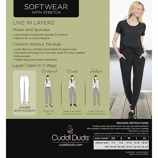 The ideal everyday layer, these women’s Cuddl Duds Softwear with Stretch joggers are unbelievably soft to the touch and effortlessly stretch with your body for all day comfort.